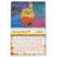 Lustigt söt för barn av väggkalender med symbolisk, närliggande digital illustration för varje månad som pekar på Helgdagar.