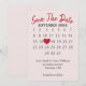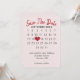"Spara datum"-kalender med rött hjärta på rosa hjärta bakgrund för kommande bröllop.