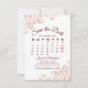 Det här Spara datumkortet har en vacker design med burgundsskript med text på en klassisk vit bakgrund och friska faux foil ro guld i hörnen. Det finns en anpassade-kalender där du kan sätta ett hjärta runt datumet i bröllop. Det finns utrymme för parets namn, bröllop och webbplats. Elegant och chic för att låta vänner och familj veta att spara datumet för din speciella dag.