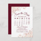 Kalender för Burgundy & Ro Guld Snöre Elegant bröl Spara Datumet