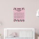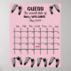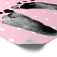 Svarta bebisfotspår på rosa och vit prickig bakgrund för Baby Shower spel.