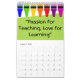 Håll dig organiserad och inspirerad under hela läsåret med vår särskilt designade kalender för lärare. Den här kalendern har rymmande månads- och veckolayouter och ger dig gott om utrymme för att hoppa över lektionsplaner, viktiga data och dagliga uppgifter. Varje månad innehåller motiveringscitat och utbildningsteman till behålla som du inspirerat och fokuserat. Den tåliga och högkvalitativa pappra säkerställer att dina anteckningar förblir intakta, medan den eleganta designen passar perfekt på ditt skrivbord eller klassrumsvägg. Med ytterligare avsnitt för anteckningar, helgdagar och professionellens utvecklingsdagar är den här kalendern ett viktigt verktyg för att du ska kunna hantera ditt intensiva undervisningsschema och hålla dig inom ditt ansvarsområde. Gör det här skolåret till ditt mest organiserade och produktiva än med vår lärarkalender.