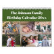 Personlig Family Birthday Calendar-designen innehåller dina familjefotografier genom hela kalendern. Varje månad markeras födelsedagen och fotot för den person vars födelsedag infaller den månaden. Du anpassar den med din text och dina foton. Alla kärlek ska få erkännande på sin födelsedag. Vad bättre än med en speciell födelsedagskalender? Det är också till stor hjälp att minnas födelsedagar under året! Gör en underbar keepy. Alla exempelfoton från Storytree.