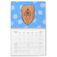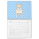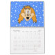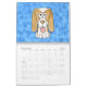 En rolig kalender för 2014 presentera gulliga tecknad hund. Bakgrundsmönstren är skuggar in av blått.