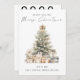 2025 Kalender God jul Träd. God jul finns i ett handskrivet stil-skript i snyggten. Med en handfull kalender för 2025 på baksidan för dina mottagare och Gott nytt år hälsning.
