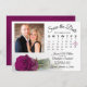 Det här vackra bröllop spara datum-kortet har en tidlös klassisk utformning med ett enda, långsökt plommon för magenta eller cassis lila färgad ro. Det finns en anpassade-kalender där du kan placera ett hjärta runt ditt bröllop-datum med plats för ditt foto, parets namn & bröllop. Elegant, romantik och snyggt, det här kortet är ett enkelt och praktiskt sätt att låta dina vänner och familj veta att spara datumet för din speciella dag.