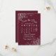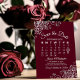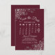 Det här Spara datumkortet har en vacker utformning med grått-skriptbokstäver på en burgundisk eller vin röd bakgrund och faux-folie silver grått-frillar i hörnen. Det finns en anpassade-kalender där du kan lägga ett rött hjärta runt datumet i bröllop. Det finns utrymme för parets namn, bröllop och webbplats. Elegant och chic för att låta vänner och familj veta att spara datumet för din speciella dag.
