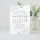 Det här Spara datumkortet har en vacker design med teal- eller turkos- och grått-skriptbokstäver på vit bakgrund och faux faux foil silver grått-frillar i hörnen. Det finns en anpassade-kalender där du kan sätta ett hjärta runt datumet i bröllop. Det finns utrymme för parets namn, bröllop och webbplats. Elegant och chic för att låta vänner och familj veta att spara datumet för din speciella dag.
