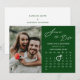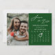 Modern Sage Grönt-bakgrundsskript Elegant Skript "Save the Date" annonscertifikat med Anpassningsbar Calendar med ett vackert foto. Låt er familj, vänner och kolleger veta att ni har fastställt ett datum för ert bröllop firande med detta kort för elegant. Om du vill flytta markören Ring > klicka på blått "Anpassa" > klicka på blått "Redigera med Design Verktyg" nedan, hittar du markören Ring - längst upp till lämnad och drar markören Ring till Bröllop. Alla texterna är i förväg ordnade så att du enkelt och snabbt kan anpassa dig med dina egna detaljer.