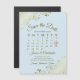 Detta vackra magnetkort för blek blå och guld är ett underbart sätt att låta din familj och dina vänner veta att spara datumet för ditt kommande bröllop. Den har en fin utformning med en anpassningsbar-kalender där du kan lägga ett hjärta runt bröllop-datumet. Perfekt för att hålla på kyldörren! Kortets hörn dekoreras med ornerade golden- och virvlar. Elegant och snyggt den här magneten är säker på att du vill!
