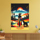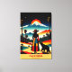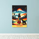 Fira "Kalifornien: Där Sunshine lever" med det här öga-kanvastrycket för att fånga resande! Det här fängslande kanvastrycket har en kvinna i en flerfärgad klänning och som står bredvid en björn, båda med blicken på ett fantastiskt landskap som blandar handflatan träd och ett berg med tak över snö, som alla badade i den varma glöden dramatiska solnedgången. Med sin retro, surrealistisk stil, som på ett utmärkt sätt innesluter Kaliforniens varierade kreativ och pulserande själ, skapar den en perfekt hyllning till Golden State's enchanting allure.