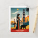 Firar kreativitetsandan med resekortet "Kalifornien: Innovationens hjärta"! Denna slående teckning har silhuetterat figurer i färgade kläder som står framför den ikoniska Golden Grind Bridge, tillsammans med en björn i förgrunden. Med stora berg och en kraftig solnedgång i bakgrunden fångar scenen på ett vackert sätt Kaliforniens innersta väsen och firar dess brinnande naturskönhet och legendariska landmärken. En perfekt hyllning till den gyllene statens unika charm och själ! Firar äventyr med det här perfekten vykort och behållor din vandring levande!