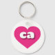 Den här nyckelkedjan har ett dynamiskt shock rosa-hjärta som innehåller det feta, rundade, vita nedre fodral-brev ca, en lekfull version av förkortningen för Kalifornien, guldstaten.