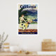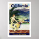 Vintage reseaffisch för järnvägar som befordrar resor till Kalifornien via tåg.