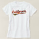 Kaliforniens vita T-shirt med solnedgång och handflatan träd. Den här designen har ord i "Kalifornien" i ett friestyle-teckensnitt med svan med handflatan träd och solnedgången färg fyllning. Du kärlekar den här kaliforniska T-shirt för manar om du kärlek Kalifornien solar.
