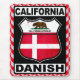 Kalifornien Dansk Mousemat. Kaliforniens danska utformning, i stil på en coola amerikansk vägskylt. Den danska texten från Kalifornien ligger längst upp och grund, med flagga från delstaten Kalifornien och flagga Danmark innanför linjetecknet. Underbar för kalifornier av danskt ursprung och för f.d. rostar i Kalifornien!