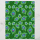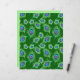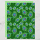 Pappra i mönster av fågelfjädrar - ljusa kalkgröna fjädrar med turkos, koboltblått och orkidéblått/violett öga, på mörken vid gröntens bakgrund