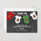 Fantastiskt tackkort-kort för en skotsk footall temamusdusch. Bakgrund med hängande barnkläder med fotboll. Röd och grönt och vit färger. BAKGRUND för KORT är VITE - så du kan lägga till ytterligare en handskriven personlig anteckning! Hämta matchande objekt i samlingen "SPORTS THEME BABY SHOWER"