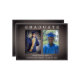 En fotoinbjudan i studenten som innehåller dina två foton på framsidan över en ritytlig bakgrund. Anpassa den svarta texten på framsidan och baksidan.