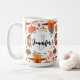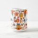 En mugg med ett säsongsbetonat höstmönster, majs, svamp och flora. Tillsammans med kalkoner och fågelskrämmor för att hedra Thanksgiving-traditionen.