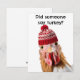 Kalkon som bär en röd stickad mössa sticker in huvudet för att säga "Sa någon kalkon?"