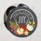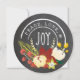 En varm och färgrik julbukett av färska illustrerade blommor överlagrar en gammal stämpel med "Fred, Kärlek och Glädje" på en kritskriftbakgrund. Perfekt för lite DIY - gör ett hål i toppen och trä en band genom för att förvandla ditt julkort till en ornament.