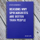 Lättfunna bärbara datorer för revisorer, bokhållare, dataanalytiker, revisorer och andra redovisnings- eller finansiella professioneller. Anpassa namn till att tryckas på grund av "Orsaker till att kalkylblad är bättre än människor". Anteckningsböcker med anpassade namn är perfekt för arbetsdagar, helgdagar, presentutbyten för kontor och mycket annat. Överraska din medarbetare eller vän med en present som de kommer till kärlek till användan!