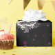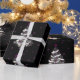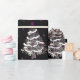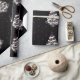 Coola och totalt olikt slående in papper. Svart bakgrund, purpurfärgad snöflingor och träd i grå färg, lilor och vit med lite döskallar på dem. Sort av Goth som mycket är olik för helgdagar.