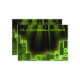 En mall för cooladj-businesscard med en bedöva design av flurocent glödande högtalare för en stor höggrönt och gröntlaser tänder i natthimmlen som kombineras med svart panelljusmusik noter på en mörk bakgrund.