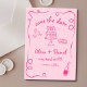 Kall Rosa Funky Whimsisk Handritad Bröllop Spara Datumet