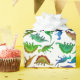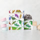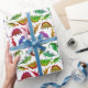 Original- konstmönster av färgrika lite förhistoriska dinosaurs inklusive triceratops, brachiosaurus, tyrannosaurusrex och andra mot en ljus bakgrund av konstnären Carolyn McFann av studion för två spinnakatter som skrivs ut på kvalitets-, anpassade (bakgrundsfärg kan ändras, om önskat) som slår in papper. Underbar för helgdagar, barns födelsedag eller för något tillfälle för någon som älskar paleontology!