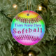 Kallast mångfärgad softballprydnadpersonlig. I stora partierrabatter för. DITT LAGNAMN som skrivas in i text, boxas nedanfört "personifierar det" delar upp till din höger eller TAR precis bort texten. Underbara idéer för softballlaggåvan för att flickor ska fira avsluta av en underbar säsong eller för julgåvor eller NÅGRA orsakar.
