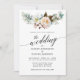 Modern kalligrafi, Elegant botanisk Blommigt, Grey Wedding bjudningskort omfattar peonier, lilies, bomull, eukalyptus löv och annan vacker grej. Grönt tillbaka.