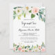 Den här enkla kalligrafiplatsen för grönt i blommigt och se inbjudan är perfekt för ett tropiskt möte med party i baby. Utformningen har en underbar vit, rosa och handmålad ro inbäddad i gröntens blad, inspirerande konstnärlig skönhet.