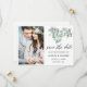 Modern kalligrafi, Elegant Watercolor botanical Eucalyptus Lövs, Greenery Save the Date Förlovning Pronouncement Couple Photo Card