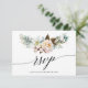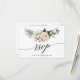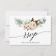 Modern kalligrafi, Elegant botanisk Blommigt, Grey Bröllop OSA Card omfattar peonier, lök, bomull, eukalyptus löv och annan vacker grej. Vit rygg.