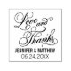 Denna eleganta gummistämpel med egen bläckpåfyllning har "Kärlek och Tacksamhet" i flytande, utsmyckad kalligrafi tillsammans med ert parnamn och bröllopsdatum i raffinerad typografi. Perfekt för nygifta som vill ge personlig prägel åt bröllops tacksamhetskort, presenter och presentkort. En genomtänkt souvenir för förlovade par, bröllopspresenter och bröllopskorrespondens.