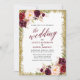 Kalligrafi Burgunder Blommig Bröllop Guld Glitter Inbjudningar