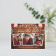 Modern Kalligrafi Skrift, Rustik Trä och Strängljus, Akvarell Burgundy Blommig Spara Datum Förlovnings Annonsering Par 3 Foto Postkort