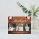 Modern Kalligrafi, Elegant Akvarell Burgundy Marsala Blommig, Bröllop 3 Foto Tack Rustikt Trä Postkort