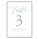 Kalligrafi Dusty Blue Bröllop Bord Bordsnummer