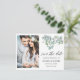 Modern kalligrafiskrift, Elegant Watercolor botanical Eucalyptus Löv, Greenery Save the Date Förlovning Notification Couple Photo Postcard