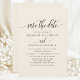 Den här minimalisten sparar datumkortet med vackra hörnstenar i ivoriankrämen parade med kalligrafiskript för elegant. Med en modern och enkel utformning är detta mångsidiga kort perfekt för vilken säsong som helst - vår, sommar, vinter eller fall. Det utesluter en snyggt- och klassvib, perfekt för ett romantiskt, chic- eller sofistikerat bröllop-tema.