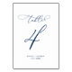 Kalligrafi för marin blå Elegant Bord 4 Bröllop Bordsnummer