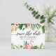 Modern Elegant Calligraphy, Watercolor Tropical Blommigt och Grey Bröllop spara datum Postcard