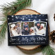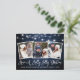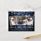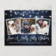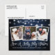 Modernt rolig kalligrafi manus Ha en glad jul 3 Foto Jul Postkort - Rustik lantlig blå trä och strängljus