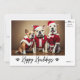 Vi presenterar vår "Calligraphy Happy Howlidays Roliga hundfoto julkort" - en förtjusande blandning av modern minimalistisk design och varmt charm. Framsidan av detta kort har en bedårande bild som fångar julens anda, med tre hundar iklädda festliga kläder. Under bilden hittar du den eleganta kalligrafin som säger "Happy Howlidays", med ett tassmotiv för att lägga till den extra hundvänliga känslan. I det övre högra hörnet kan du anpassa kortet med din familjs signatur, och på den nedre högra kanten noteras året. På baksidan finns ett vackert meddelande om "Merry Christmas" som påminner dina nära och kära om årstidens värme och glädje. Det är ett unikt och hjärtligt sätt att skicka dina julhälsningar. Vårt kort är perfekt för hundälskare och alla som uppskattar den enkla men eleganta skönheten under julen. Dela kärlek och skratt med detta unika och oförglömliga julkort. Beställ nu och gör denna