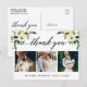 Modern Kalligrafi, Akvarell Grön Vit Blommig, Bröllops 3 Foto Tack Postkort