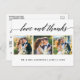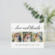 Modern Elegant Kalligrafi Guld Ramar Kärlek och Tack Bröllop 3 Foto Tacksamhetskort