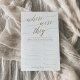 Den här guld-kalligrafispelet "var var de befann sig" i elegant är perfekt för en enkel möhippa. Neutraltens utformning har ett minimalistiskt spelkort som är dekorerat med romantisk och vismisk faux-folie av guld. Obs! Den här designen har inte äkta guld-folie. Det är en grafik av hög kvalitet som framställs som guld-folie.